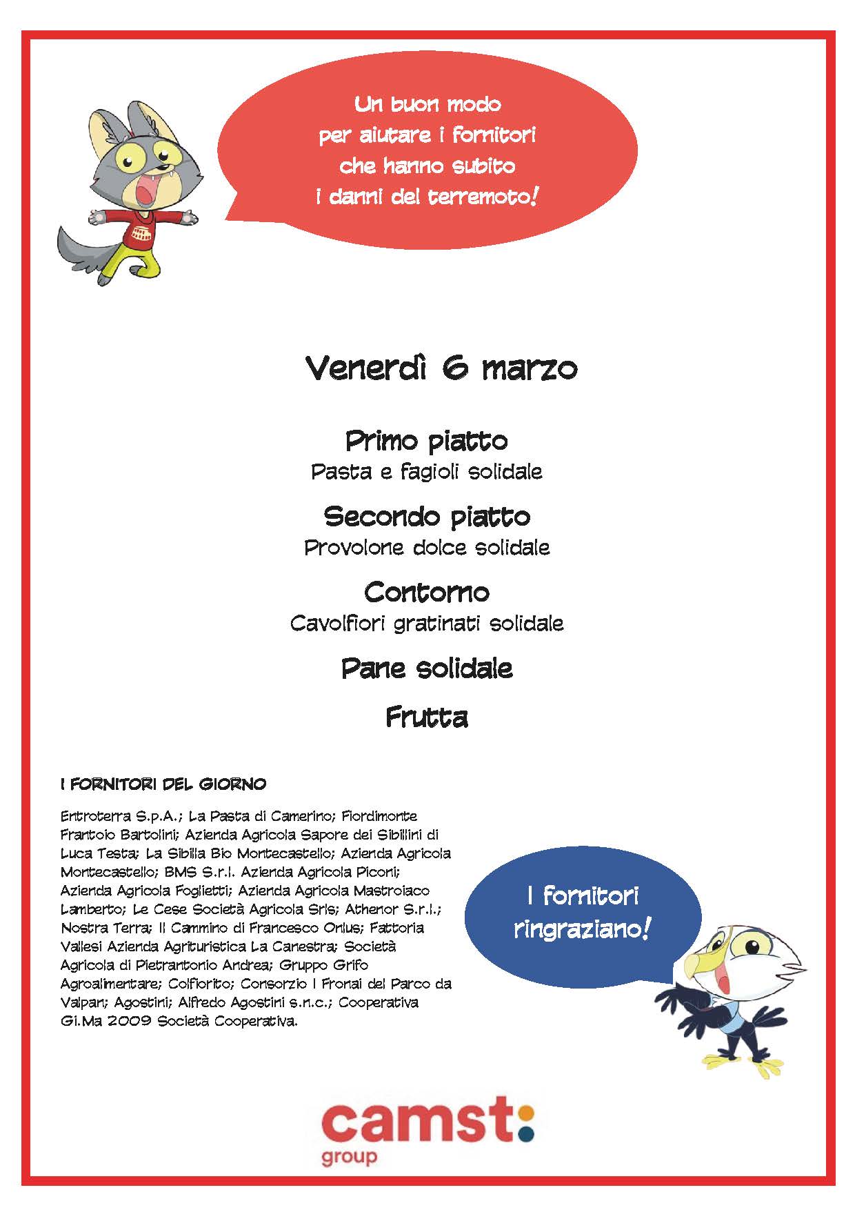 6 Marzo - Giornata del Menu Solidale